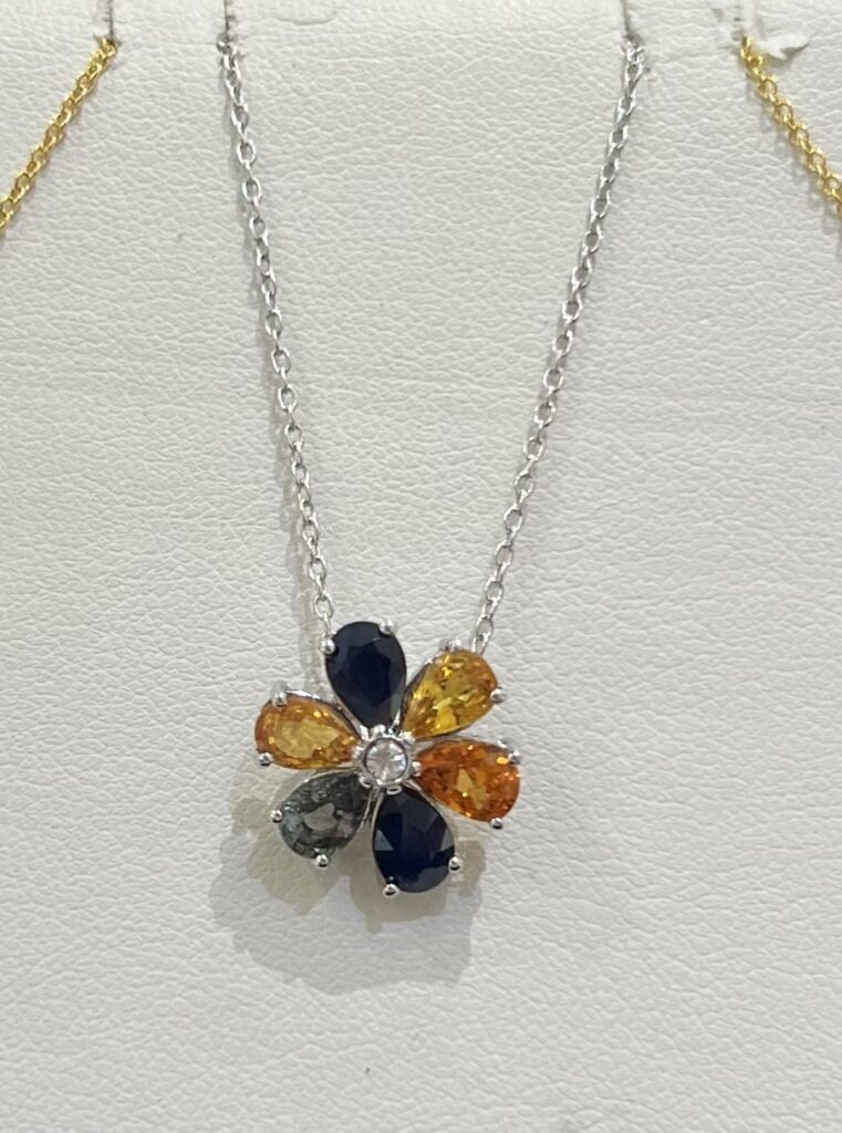 This precious flower, made with petals of Sapphire and Citrine, is truly one of a kind. Current price $400.00